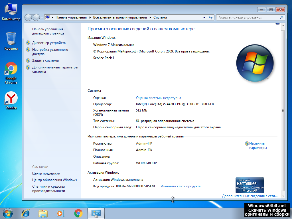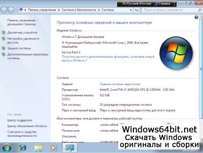 Домашняя Windows 7 Базовая SP1 русская версия