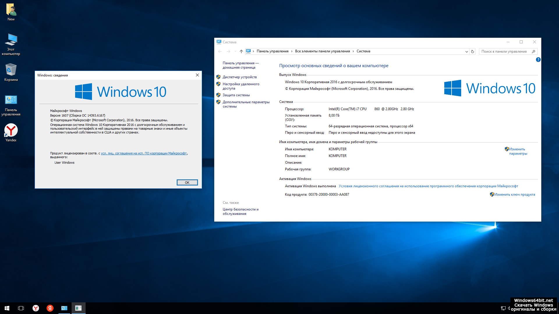 - Ключ продукта: Встроен на рабочем столе активатор