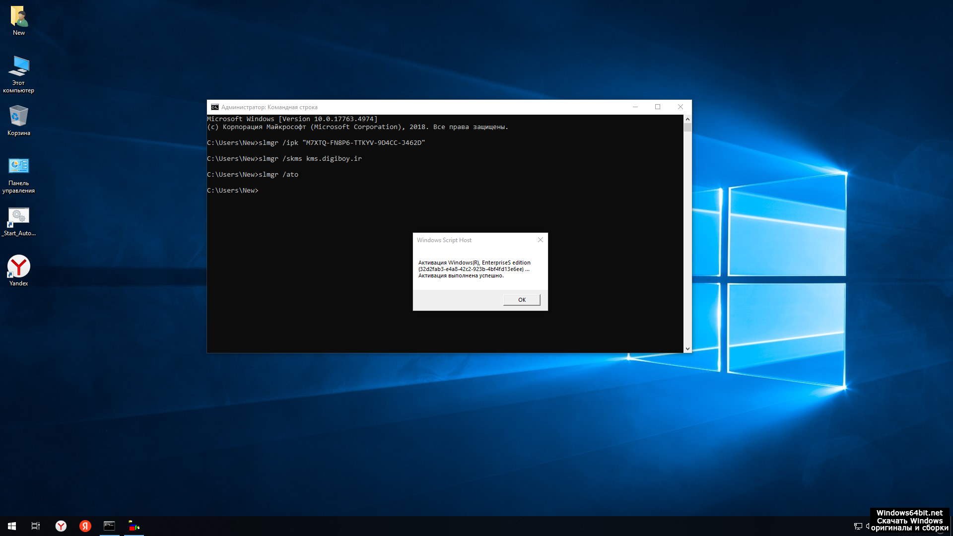 активатор на рабочем столе