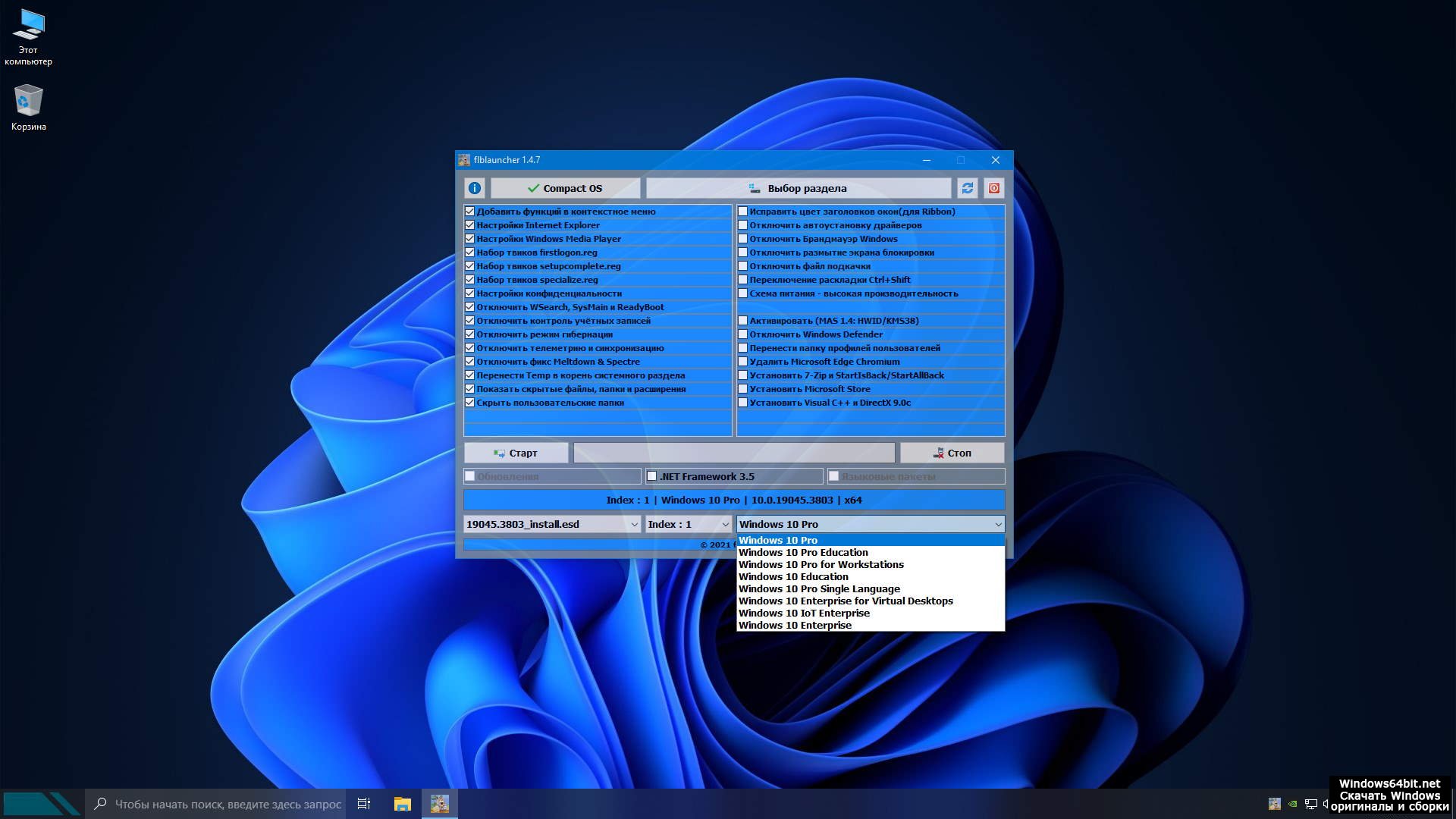 Пост: Windows 10 Компакт 2024 новая пиратская сборка от Flibustier