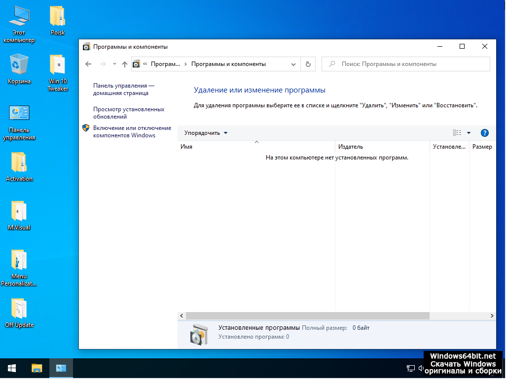 - Выключены Защитник со Смартскрином, UAC, фикс Meltdown/Spectre. Обновления – только вручную, встроены DirectX, VC++, вырезан WinRE.wim (остальные компоненты на месте в системе для чистой установки).