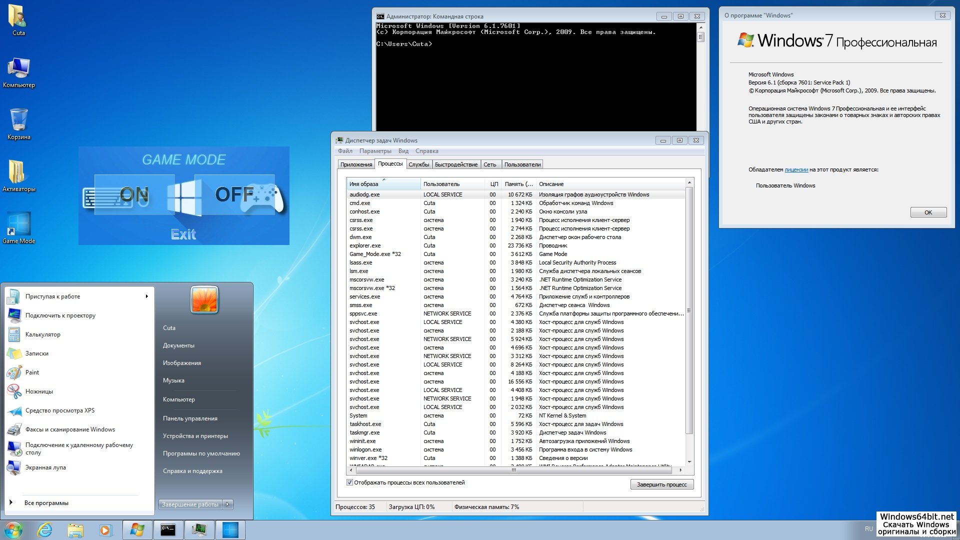 - Версия ОС: Windows 7 SP1 x64 Professional Game OS 2.4 by CUTA