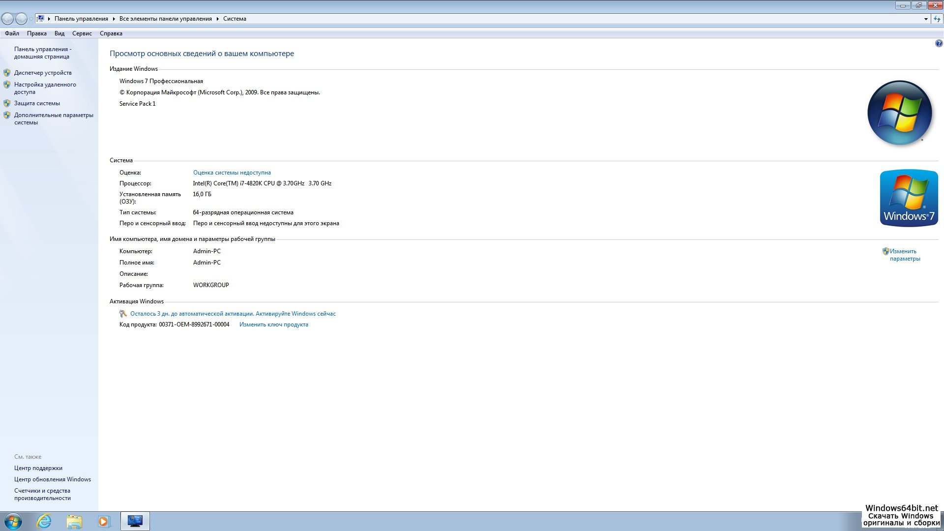Windows 7 64bit с высокой производительностью
