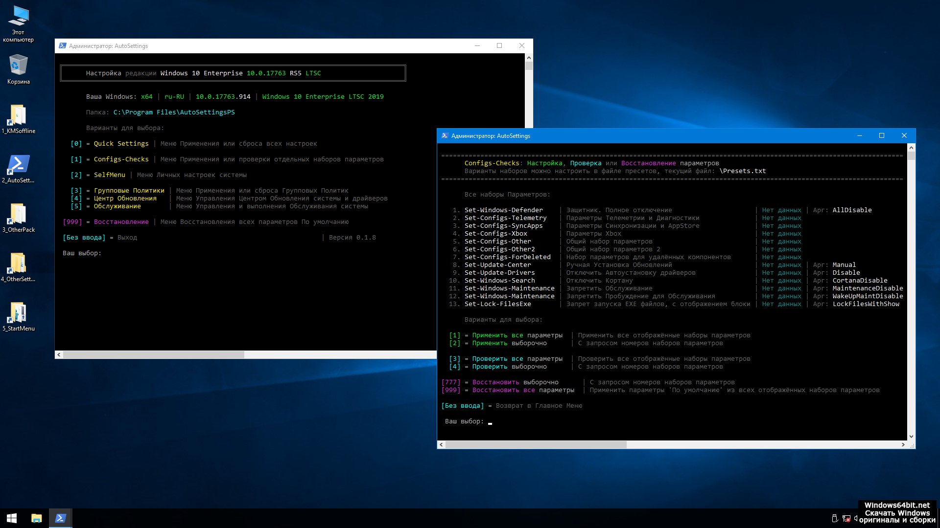 Если юзер планирует изменить параметры AutoSettingsPS, после установки Видновс Десять Корпоративная ему потребуется сразу же выполнить перезагрузку компьютера или ноутбука. После этого зайти в одноименный ярлык, распакованный на рабочий стол, и кликнуть по основному скрипту.