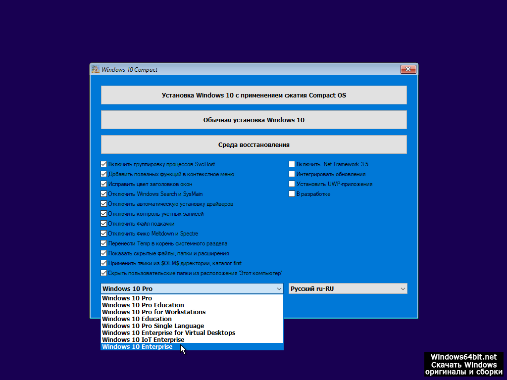 Windows 10 pro 2020 без лишнего 1909 64bit 32bit на русском