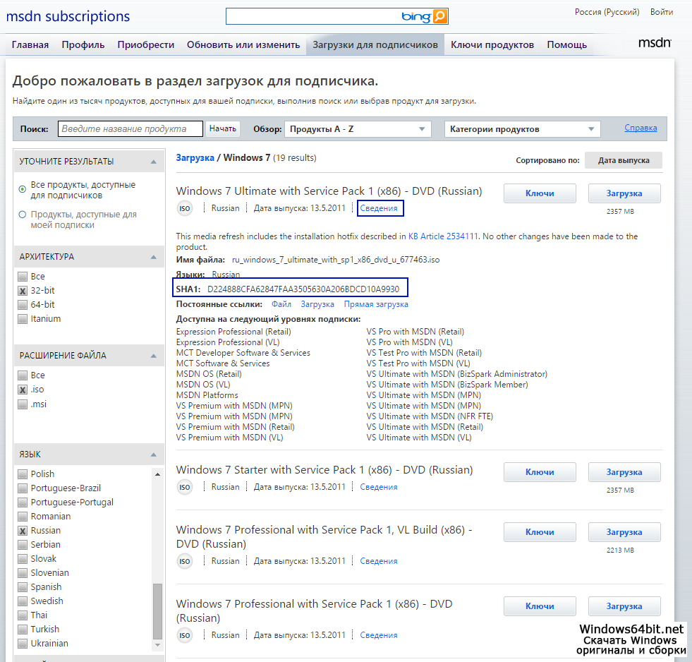 Не смотря на то, что сборки windows 7 удобней в плане установки, настройки и активации, оригинальный windows 7 даёт гарантию чистоты образа, без вирусов и рекламных ботов. Чистый виндовс семь - это скаченный в своё время ISO образ WINDOWS7 с официального сайта MSDN и без изменений и вмешательств выложен на нашем сайте бесплатно для скачивания через клиент торрент. Убедится в оригинальности образа можно сверив контрольные суммы MD5.