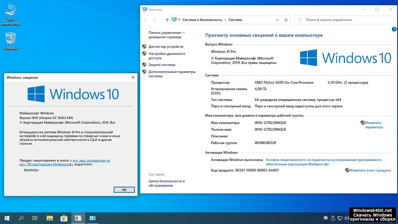 Windows 10 активированная ru x64 1909 Pro