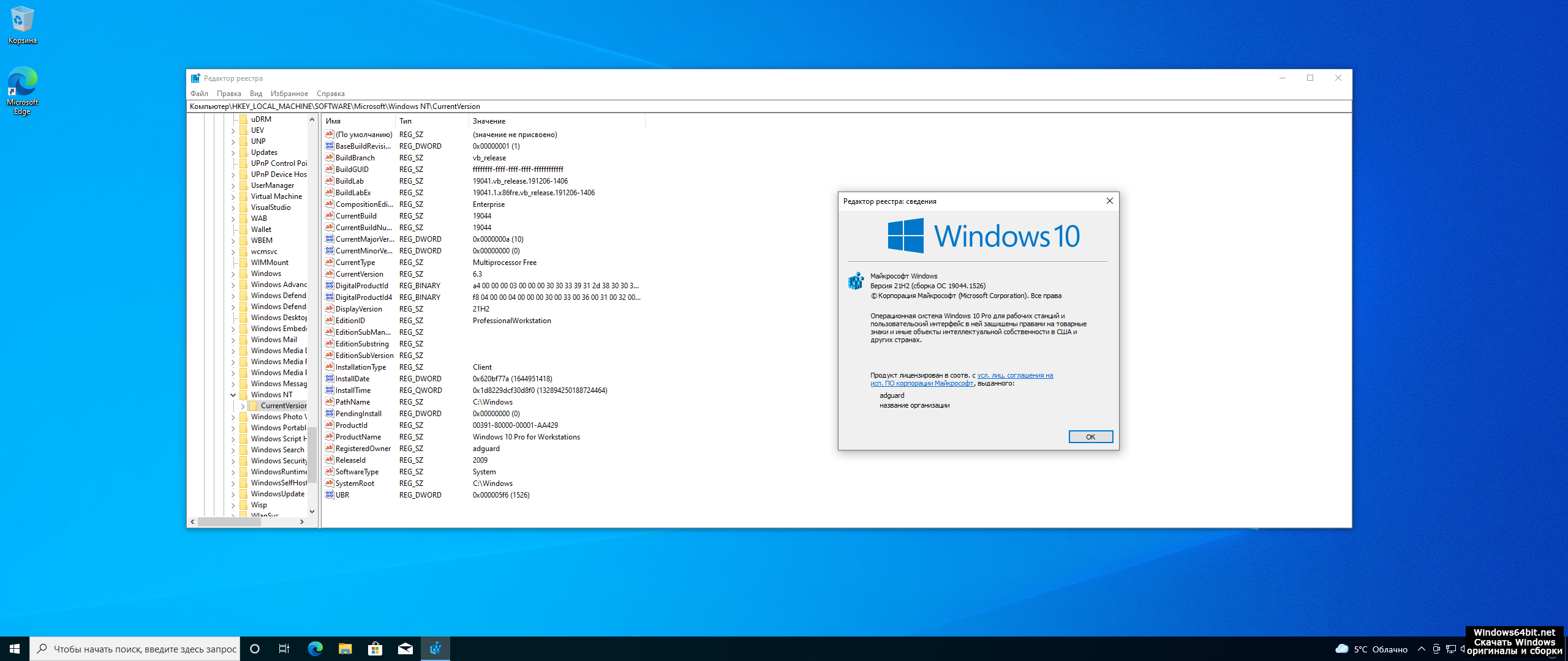 - Версия ОС: оригинал Windows 10 21H2 за февраль