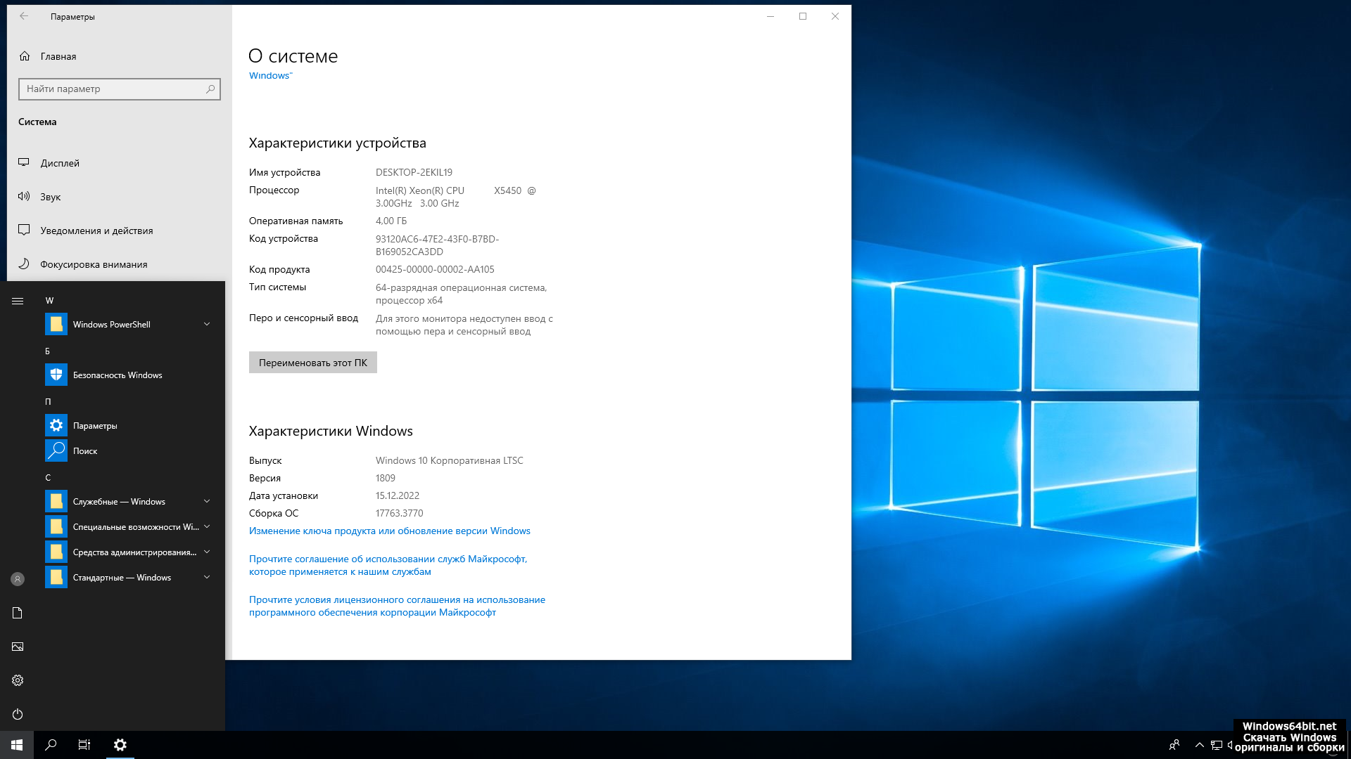 - Версия ОС: оригинал Windows 10 1809 LTSC (17763.3770) за декабрь 2022