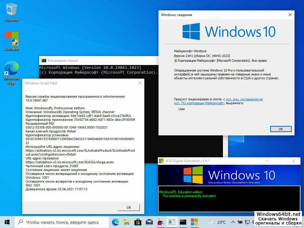 ISO образ Windows 10 21h1 64bit 32bit с активатором