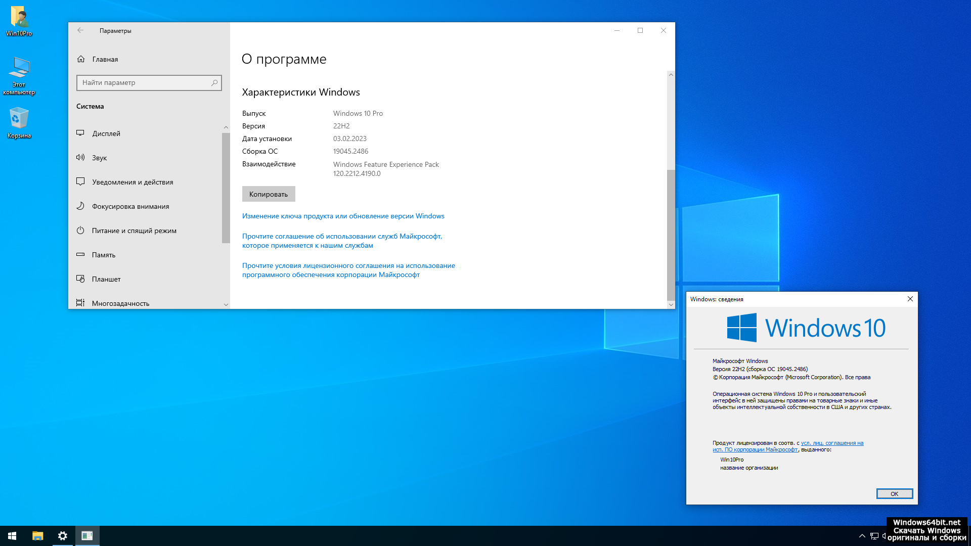 - Версия ОС: Windows 10 Pro (19045.2486) 22H2