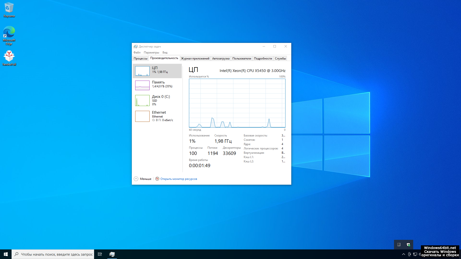 Windows 10 LTSC х64 с дополнениями для слабого ноутбука и ПК