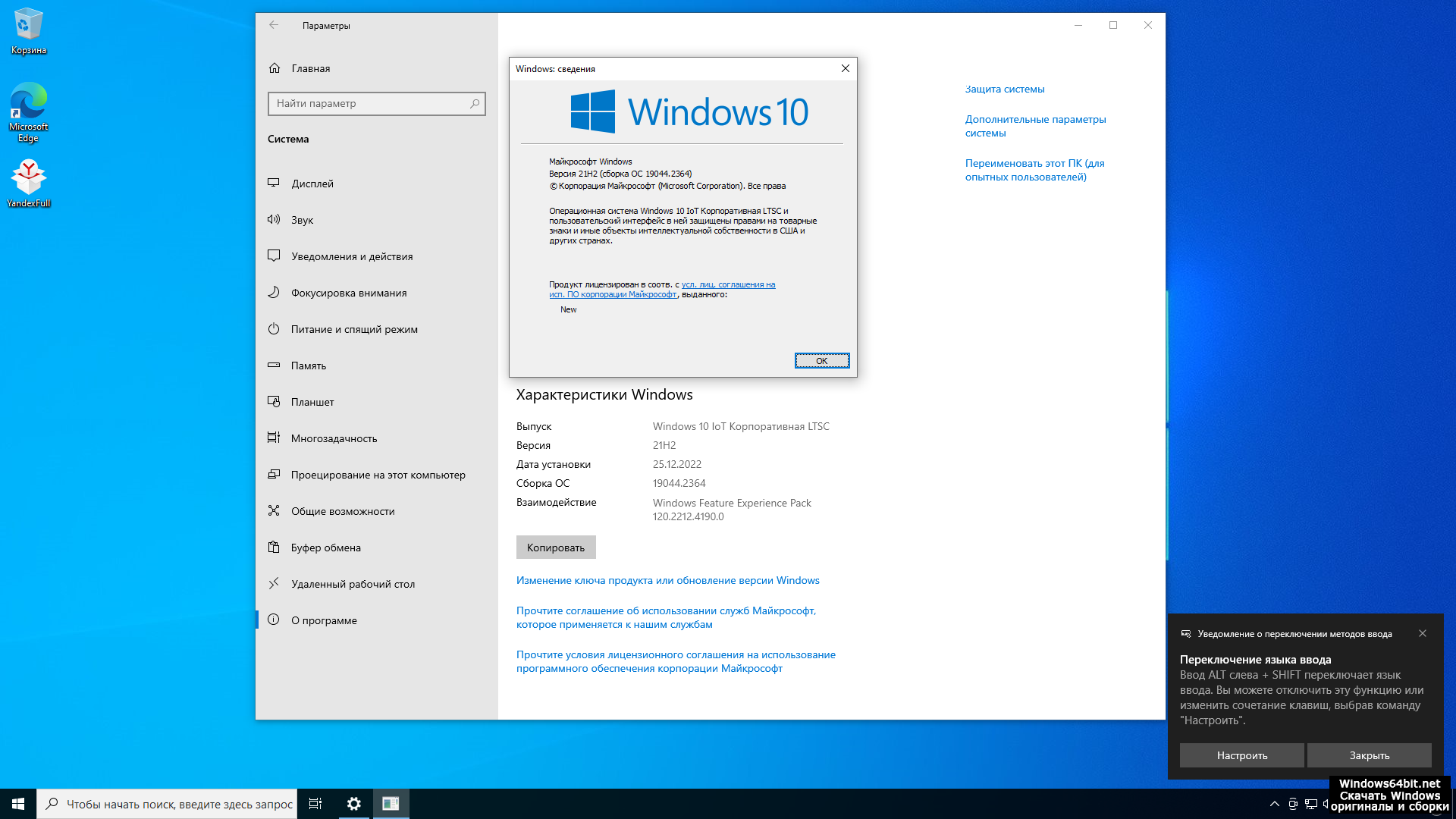 - Версия ОС: Виндовс 10 Enterprise ЛТСЦ + IoT LTSC (19044.2364) 21H2
